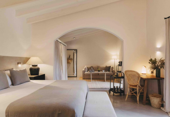 Just 20 minutes from the airport and the centre of Palma, in the heart of the Mallorcan countryside and close to some of the island’s most beautiful beaches, lies this hotel only adults in Mallorca. A 40-hectare estate with 25 light-filled rooms scattered among vineyards, olive trees and lavender fields.
