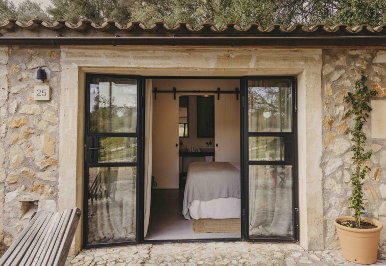 Eigene Terrasse mit idyllischem Blick auf die Weingärten der Finca, wo der hauseigene Wein angebaut. Im Innenraum lädt ein gemütliches Wohnzimmer mit bequemem Sofa zum Entspannen ein. Das lichtdurchflutete Ambiente unterstreicht die perfekte Harmonie mit der Landschaft.